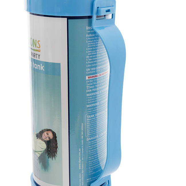 A high-pressure 2.2L helium tank, containing a safe gas mix of approximately 79% helium and 21% oxygen.