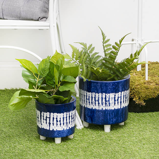Home Accents Plant Pot Blue White Spot Set 2 (20.5Dx20.5cmH)