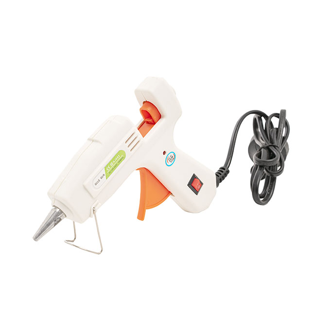 Mini Glue Gun - Our Hot Melt Mini Glue Gun can be used to glue plastics, polystyrene and polyurethane foam products, paper, wood, leather, fabric and other non porous materials. It is lightweight with an easy to use trigger action for dispensing hot melt glue without any fumes or solvents. It has a switch on handle. Hot melt glue is an adhesive that will dry quickly and is great for gluing wedding corsages, invitations, scrap booking and other crafts. Use 8mm Mini Glue stick refills 1kg bag Item no. GSSMBAG.