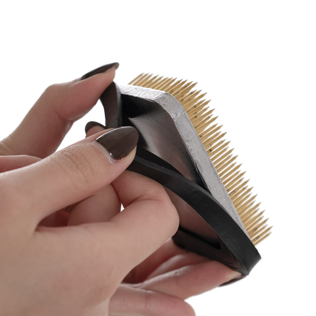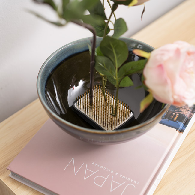 The Stayput Rectangle is by far our most popular model. This highly practical, well weighted and balanced piece measures 5cm x 6.8cm, 22mm tall, and weighs 310gms. Useful in vases as well as more adventurous arrangements. A heavy metal flower holder with pins is called a Pinwheel, Kenzan, Stay Put or Spiky Pin Frog. A kenzan is used in Japanese flower arranging techniques called Ikebana. Another expression in Ikebana is the Seika or Shoka style.