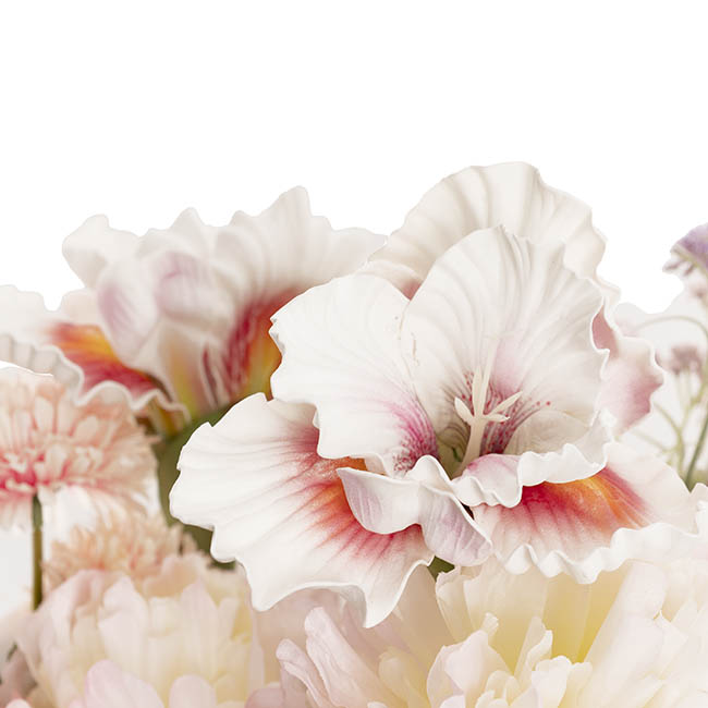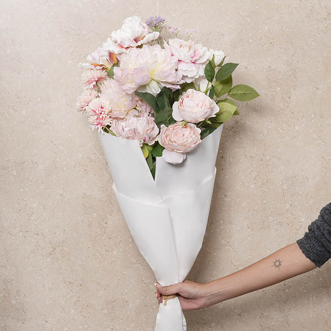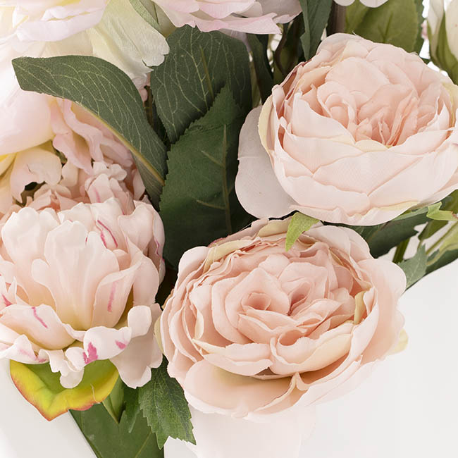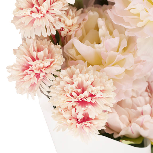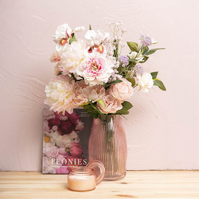 This elegant pre-made faux flower bouquet features a beautiful mix of soft pink tones for a timeless, romantic look. Measuring approximately 85cm tall, it includes a charming blend of roses, peonies, iris, baby’s breath, and other complementary blooms for a full, luxurious arrangement. Ready to place directly into a vase with no arranging required, the stems can also be trimmed to suit your preferred height. Perfect for home styling, events, or gifting, it brings lasting beauty without any maintenance.