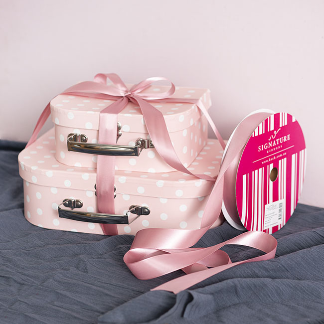 This 100m Jumbo Bulk Single Face Satin Ribbon in Dust Pink has a glossy sheen on one side and matte on the reverse. This is an elegant and economical option, particularly for commercial use.