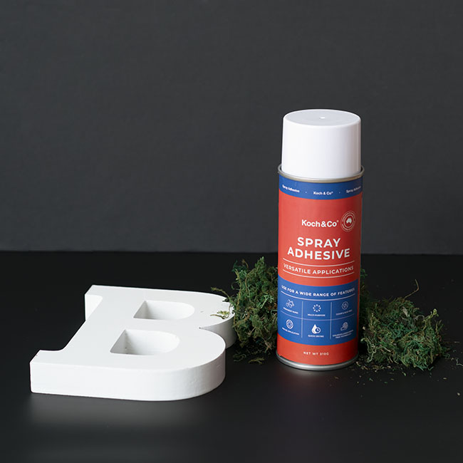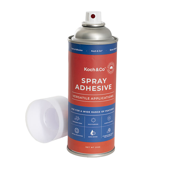 With an easy-to-use nozzle, use Koch & Co Spray Adhesive to apply an even layer of glue to a large surface, or use in small bursts for more targeted ‘spot’ gluing.