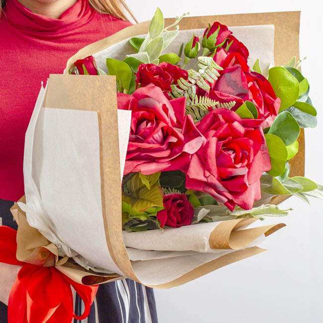 The smooth texture of white kraft paper gives it an elegant and crisp appearance that is perfect for creating a unique flower arrangment or gift