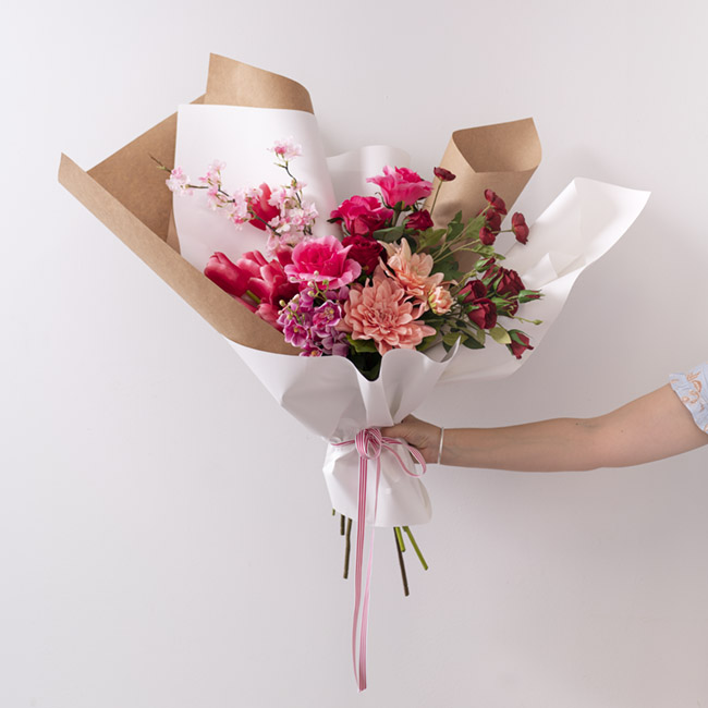 The smooth texture of white kraft paper gives it an elegant and crisp appearance that is perfect for creating a unique flower arrangment or gift.