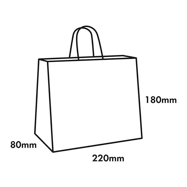 Also available in white, this eco-friendly bag measures 220mm wide, 80mm deep in the gusset, and 180mm in height. This bag is available in packs of 10.