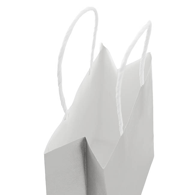The colour is printed onto a white kraft bag and comes complete with a white twisted paper handle. Crafted with superior strength and construction, these bags are made of 120 GSM kraft paper. Each bag can bear up to 14kg.