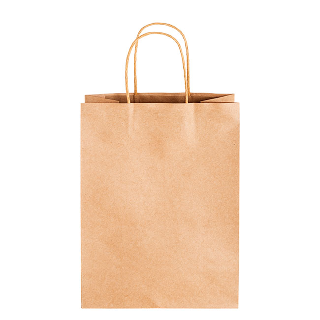 Available in a pack of 10, each bag measures 200gsm thick, can bear up to 14kg, features twist handles, and has a flat base for easy packing. Also available in white and a range of sizes, this bag measures 420mm tall, 320mm wide, and 110mm deep in the gusset