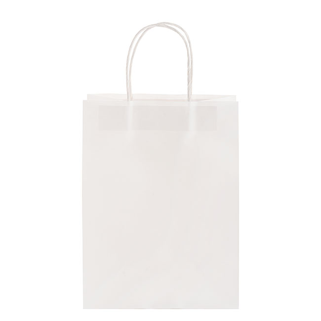 Available in a pack of 10, each bag measures 200gsm thick, can bear up to 14kg, features twist handles, and has a flat base for easy packing. Also available in brown and a range of sizes, this bag measures 420mm tall, 320mm wide, and 110mm deep in the gusset