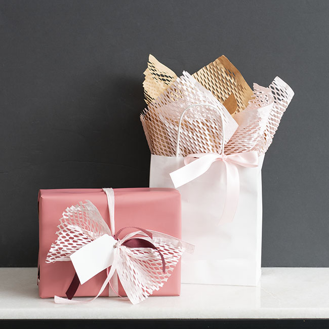 Each roll is 80gsm kraft paper and is 50cm x 30m and can expand up to 40m. Once expanded, this honeycomb wrap measures approximately 4mm thick. Available in a pack of 50 sheets, honeycomb or honey comb wrap is also known as Hex wrap.