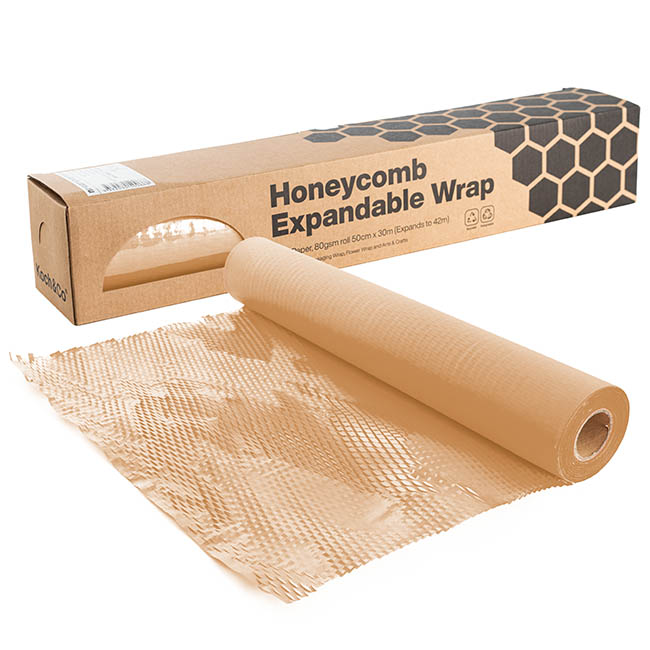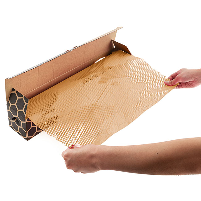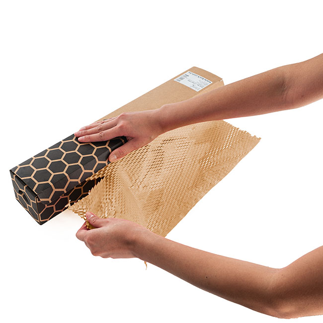 Each roll is 80gsm kraft paper and is 50cm x 30m and can expand up to 40m. Once expanded, this honeycomb wrap measures approximately 4mm thick. Available in a pack of 50 sheets, honeycomb or honey comb wrap is also known as Hex wrap.