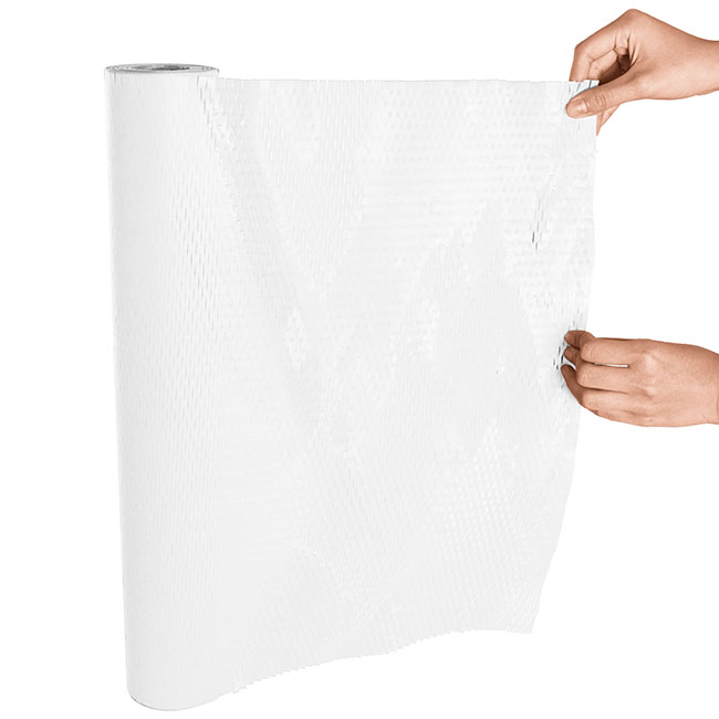Each roll is 80gsm kraft paper and is 50cm x 30m and can expand up to 40m. Once expanded, this honeycomb wrap measures approximately 4mm thick. Available in a pack of 50 sheets, honeycomb or honey comb wrap is also known as Hex wrap.