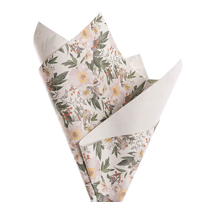 Kraft Paper Peony & Lilly 110gsm White Pack 100 (50x70cm)