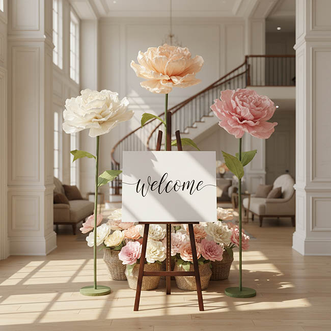 This elegant giant peach-coloured rose stem adds a soft, sophisticated touch to any indoor display. Measuring 125cm tall with a 30cm tissue-paper flower head, the petals, leaves, and stem feature underwire, allowing you to gently shape and style the rose to your liking. Delicate and beautiful, it requires careful handling, as it is very fragile, not waterproof, and not suitable for outdoor use. Please note, this rose stem does not come with a base.