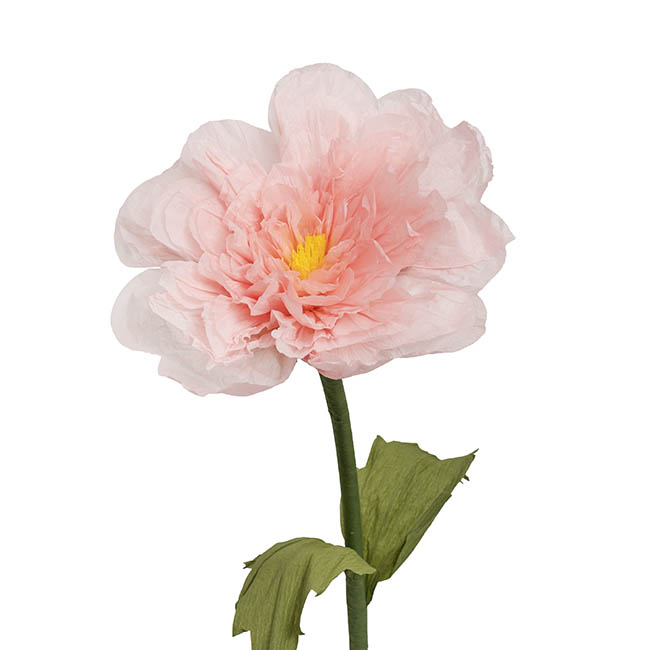 This tissue paper zinnia flower stem in soft pink makes a stunning statement with its oversized 35cm bloom and tall 110cm height. Crafted with underwire in the petals, leaves, and stem, it allows easy shaping to achieve the perfect look for displays or event styling. Beautifully lifelike yet lightweight, this piece is ideal for indoor décor only, as it is not waterproof and not recommended for outdoor use.