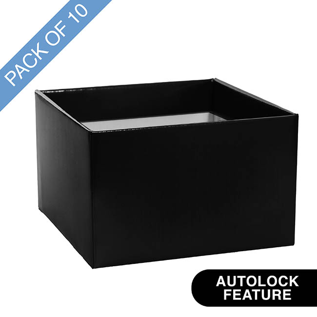 Our large posy boxes measure 22cm x 22cm x 14cm high. A matching large lid is sold separately in limited colours. These boxes are not waterproof, so it is recommended to use in conjunction with our clear or coloured cello wrap. This posy box is sold as a pack of 10.