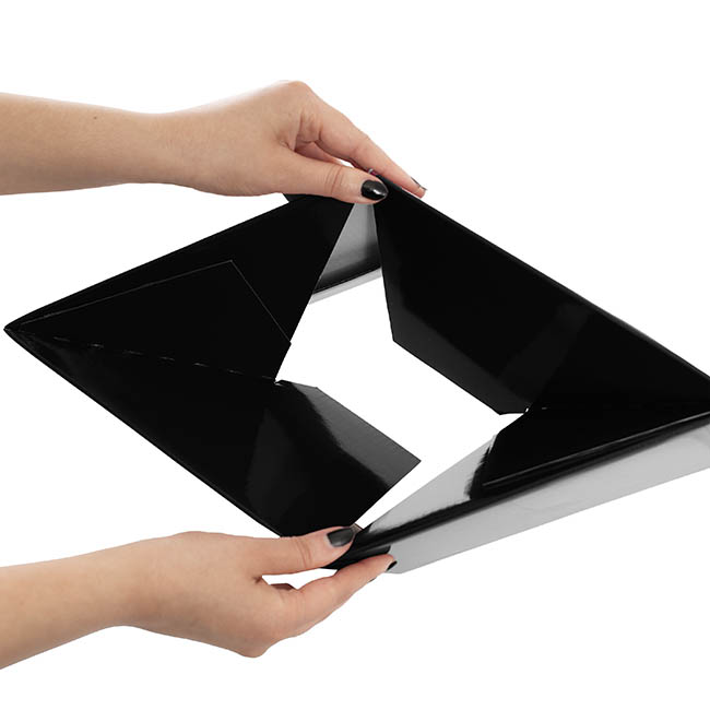 Simply take your flat pack posy box and open. The base will lock into position with a light pull or (or push from the inside). Then fold down the top flaps.