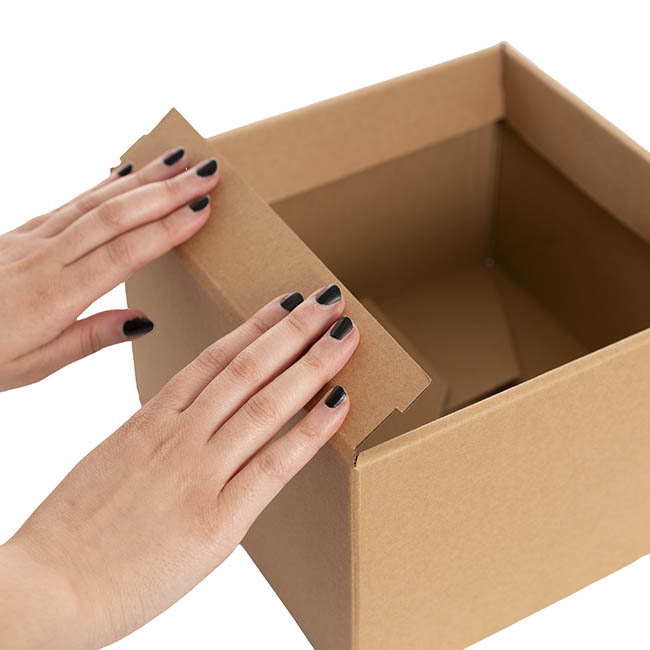 Simply take your flat pack posy box and open. The base will lock into position with a light pull or (or push from the inside). Then fold down the top flaps.