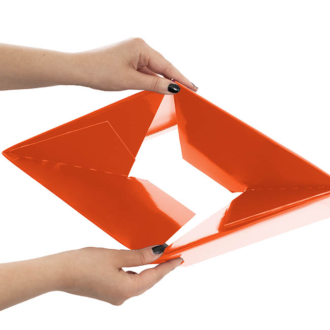 Simply take your flat pack posy box and open. The base will lock into position with a light pull or (or push from the inside). Then fold down the top flaps.