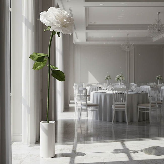 Measuring 130cm tall with a 30cm crepe-paper flower head. Please note, this piece does not come with a base.