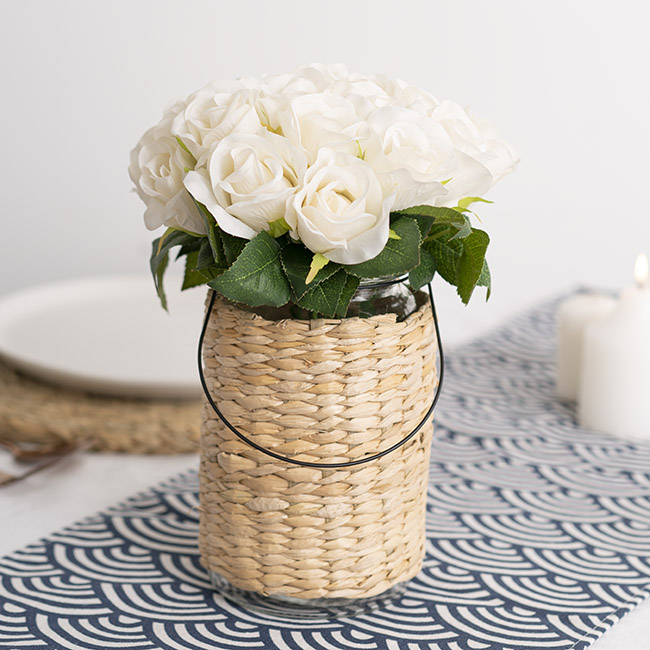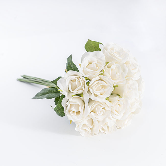 Featuring 18 semi-blooming nude beige rose buds, this ready-to-use bouquet is perfect as a lovely artificial bridal bouquet or as an arrangement for your home. Trim stems to the desired length or leave them as is and mix them with other foliage & flowers to create a larger bouquet. Each beautiful rose has a head size of 5cm and is 33cmH.