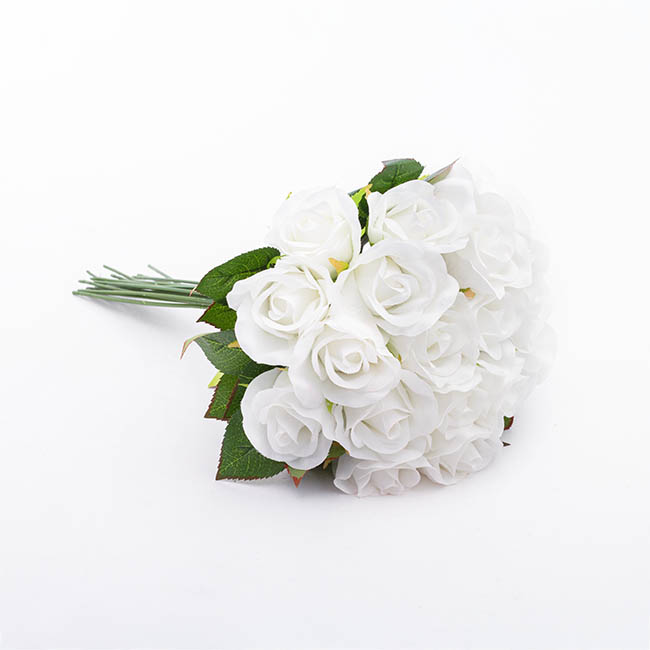Artificial Rose Bouquets - Katie Rose Bouquet with 16 Flowers White (25cmH)