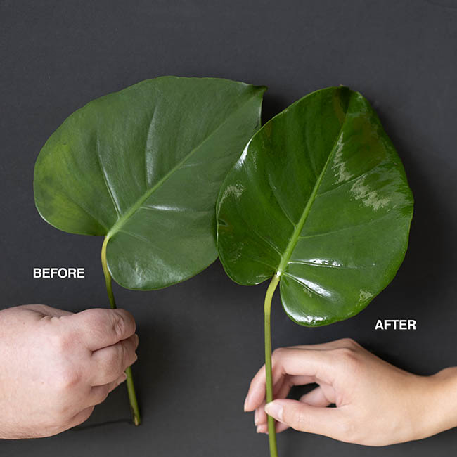 With a uniquely fine mist and a smooth application nozzle, our Leaf Shine Spray provides even coverage that has the added bonus of protecting leaves from sun damage.