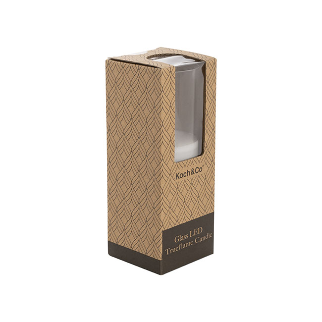 Be mesmerised by the magic of LED candles. This Glass Trueflame™ Flickering LED White pillar candle gives a cosy ambience like a real candle. It is a safe alternative to decorate your home, weddings and any special events. Featuring a glass holder filled with real wax, long battery lighting life and a realistic flameless glow.