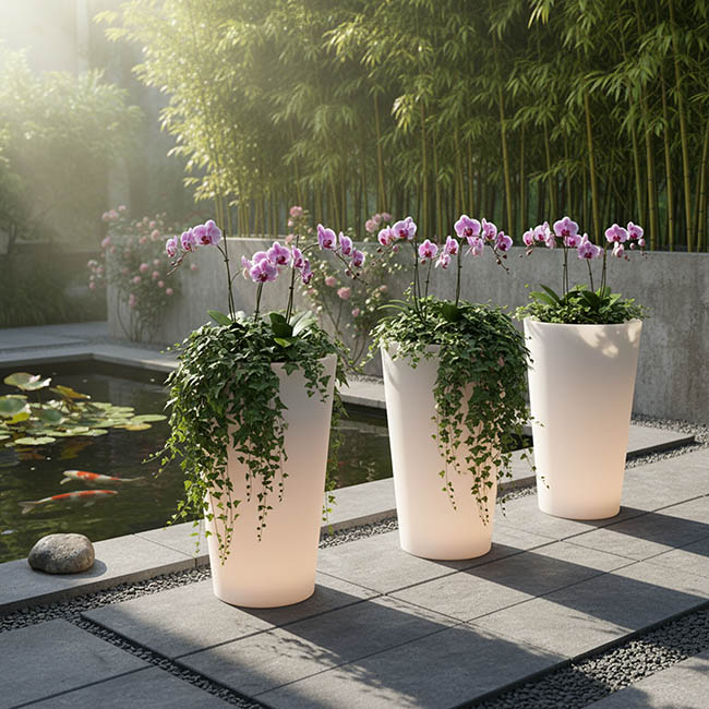 This tall LED planter pot brings a sleek, illuminated touch to any indoor or outdoor setting and can even be used as a stand for added versatility. Measuring 38cm in diameter and 90cm tall, it’s crafted from durable PE plastic with an IP54 waterproof rating and features 16 RGB colour-changing options plus 4 lighting modes, all easily controlled by a 24-key remote with a 5m range. It supports both plug-in and rechargeable use, comes with a 1.5m charging cable, and provides 8–10 hours of vibrant lighting after a 4–5 hour charge with its built-in 4000mAh lithium battery.
