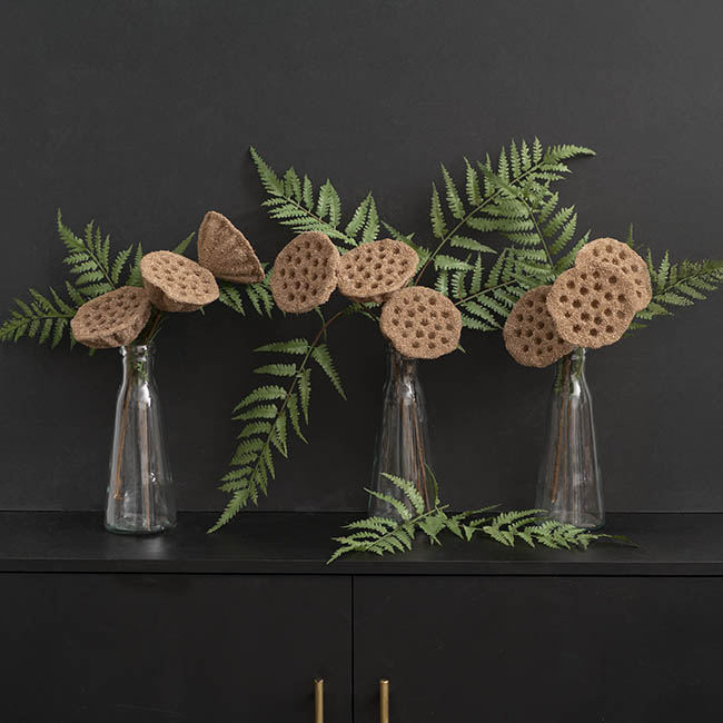 Bring a rustic, natural element to your floral arrangements with this Brown Lotus Pod Spray. Its earthy tones and intricate design make it a striking addition to any bouquet, vase, or centrepiece, adding texture and a touch of organic beauty to your home décor.