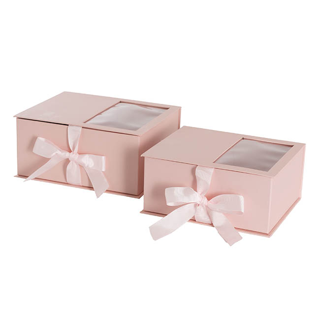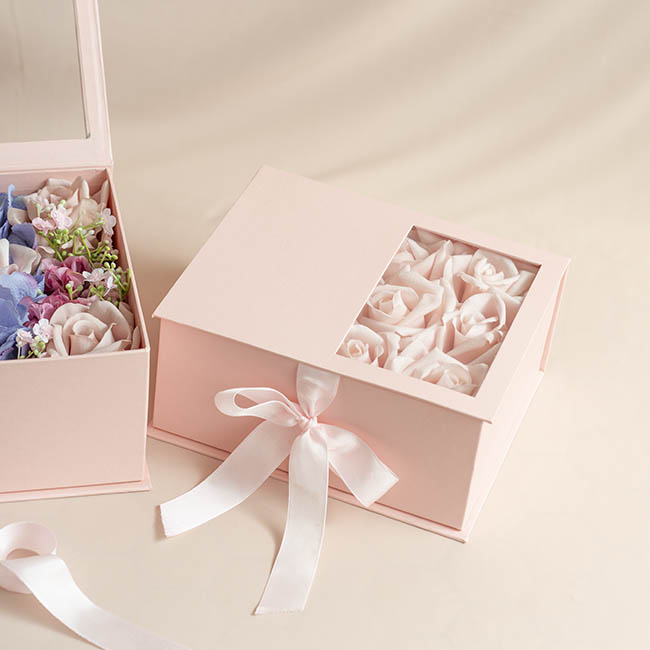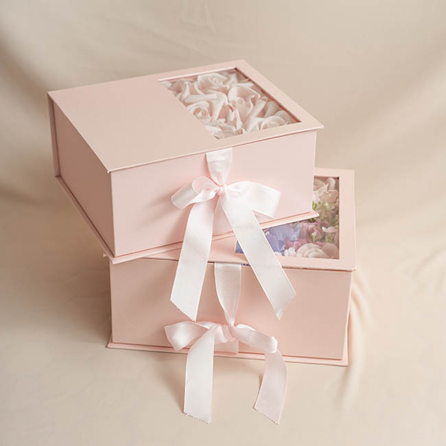 Sold as a set 2, these rigid gift boxes are perfect for showcasing your flowers or gift through the window but also keeping a portion of the gift as a surpise for the recpient.