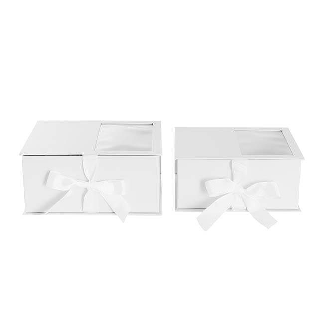 Sold as a set 2, these rigid gift boxes are perfect for showcasing your flowers or gift through the window but also keeping a portion of the gift as a surprise for the recipient.
