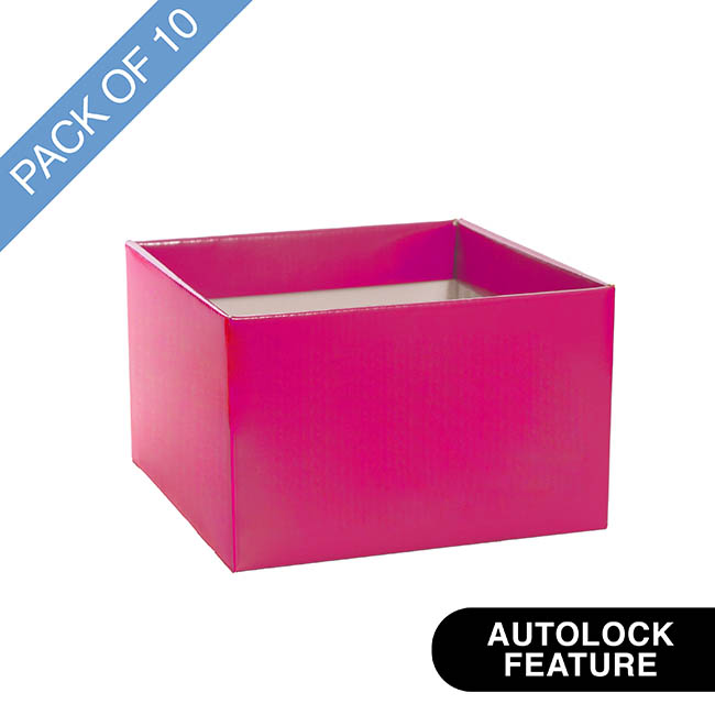 Our medium posy boxes measure 16cm x 16cm x 12cm high. These boxes can be matched with our medium size lid, sold separately in limited colours. These boxes are not waterproof, so it is recommended to use in conjunction with our clear or coloured cello wrap. This posy box is sold as a pack of 10.