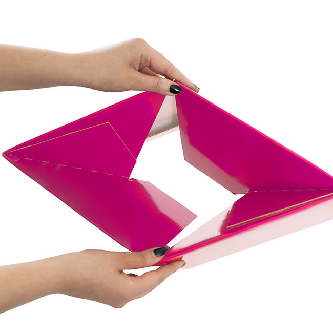 Simply take your flat pack posy box and open. The base will lock into position with a light pull or (or push from the inside). Then fold the top flaps in.