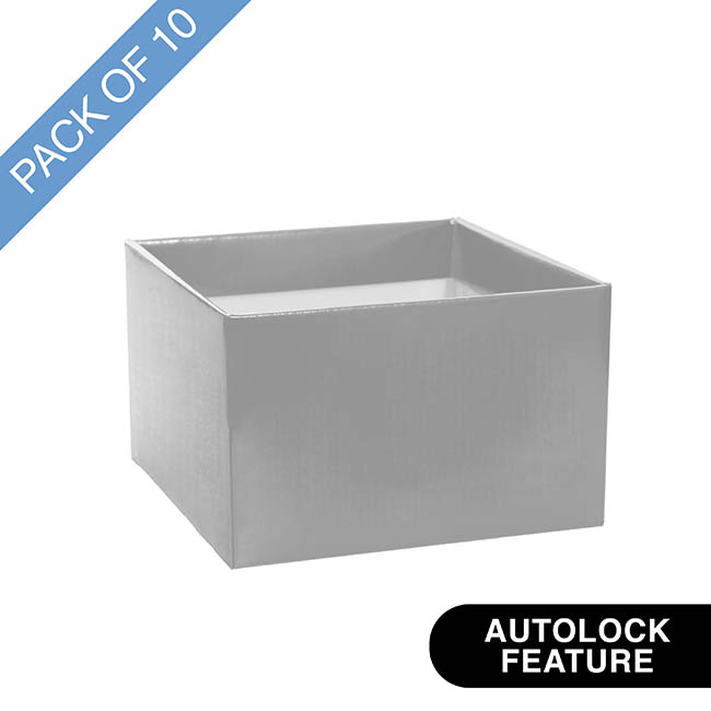 Our medium posy boxes measure 16cm x 16cm x 12cm high. These boxes can be matched with our medium size lid, sold separately in limited colours. These boxes are not waterproof, so it is recommended to use in conjunction with our clear or coloured cello wrap. This posy box is sold as a pack of 10.