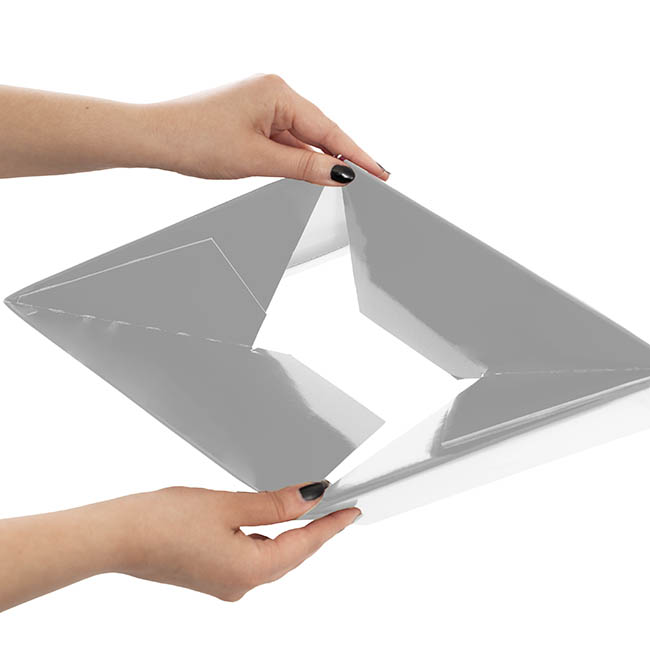 Simply take your flat pack posy box and open. The base will lock into position with a light pull or (or push from the inside). Then fold the top flaps in.