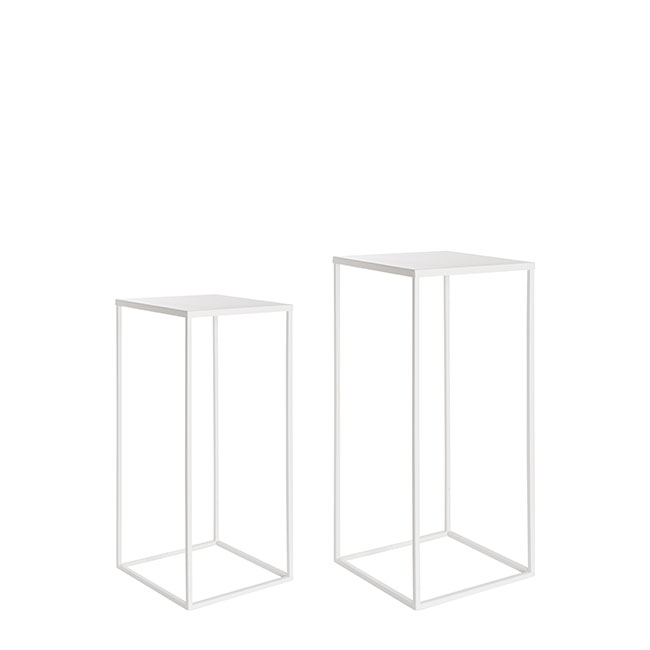 Smaller centrepiece measures 22cm x 22cm and 50cm tall.Colours: White