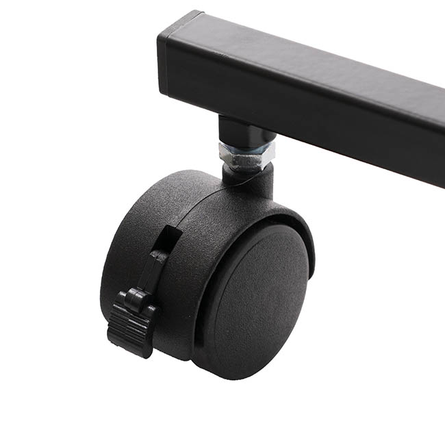 This flower stand can adjust up to 82cm in height. It includes three lockable wheels for extra stability when in use.