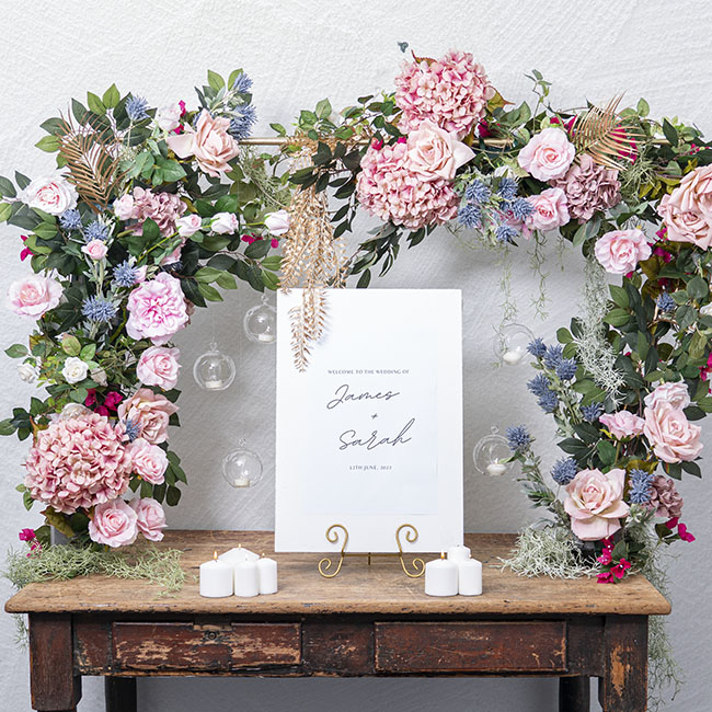 Stands 95cm above your table providing ample room for draping and hanging decorations. The height is not adjustable. Comes flat packed and is easy to assemble.
