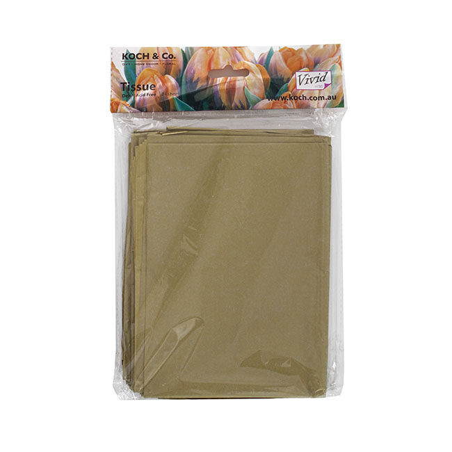 Add the finishing touch to your packaging with eye-catching metallic gold tissue paper. It's a luxurious strong, evenly printed, 17gsm tissue paper. Acid free and comes in a pack of 100 sheets. Not intended for long term storage. Also available in packs of 100.