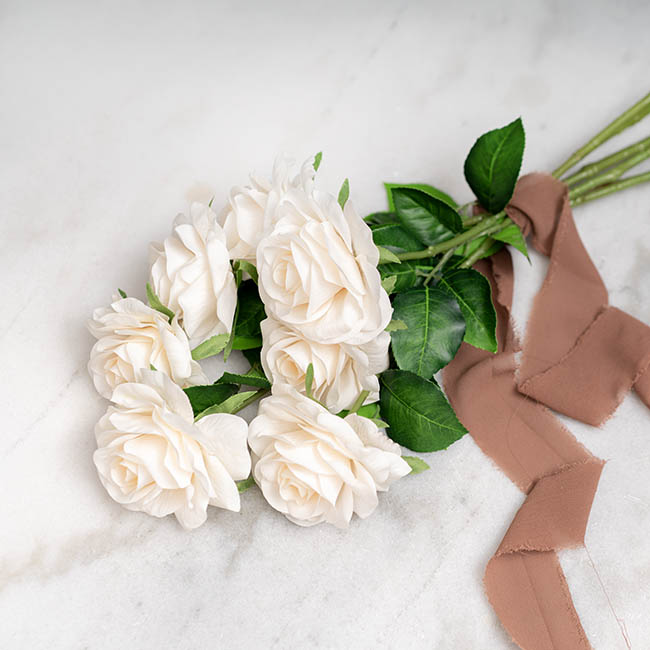 The flower head of this rose measures approximately 9–9.5cm in diameter. The stem measures 57cm long. This rose is sold individually.