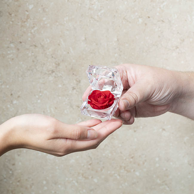Introducing our exquisite Mini Diamond Shape Box made from clear acrylic. Its crystal-clear transparency allows you to display cherished items with unparalleled clarity, whether it's precious jewellery or eternal preserved flower heads. The sturdy construction ensures durability, while the precision-cut facets enhance the box's aesthetic appeal, creating a mesmerizing play of light. Sold individually, this sqaure box measures 4.5cm tall.