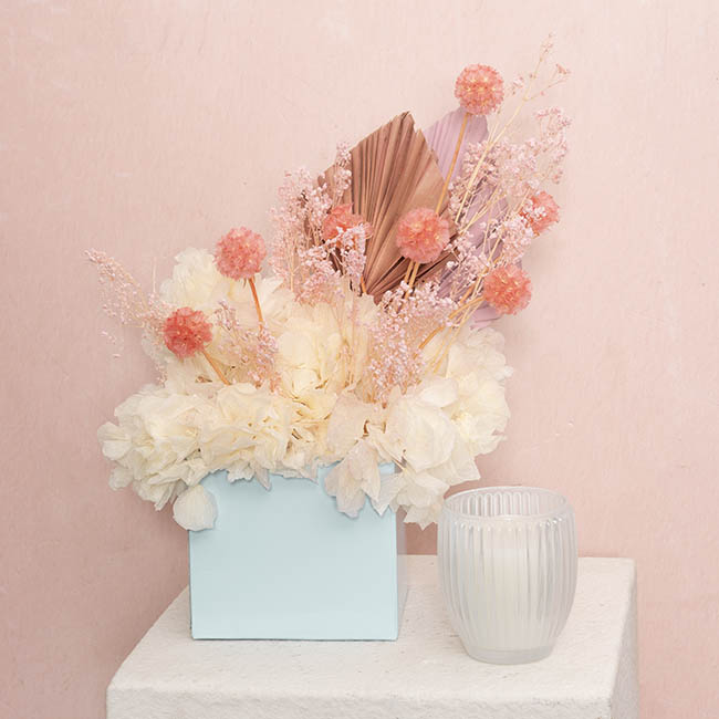 Our mini posy boxes are 13cm x 13cm x 12cm high. These boxes are not waterproof, so it is recommended to use in conjunction with our clear or coloured cello wrap. Use this posy box with a 1/3 or 1/2 foam brick. This product is sold as a pack of 25.