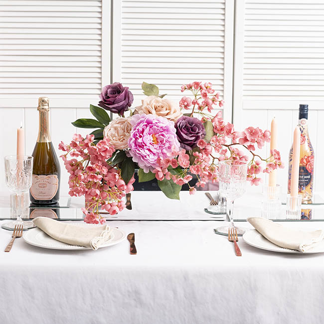 This platform riser is elegantly finished with a bevelled edge and flocked black base with rubber pads.