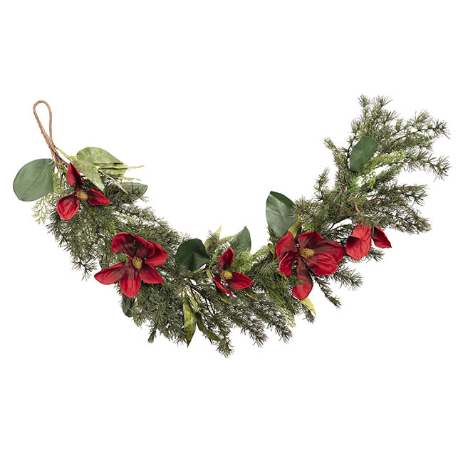 Use this magnolia and fern garland to add colour and fullness to your Christmas tree. Alternatively, wind it along your bannister, across your mantel, along your table display, or hang it across a doorway for verdant Christmas decor. For additional fullness or colour, use florist wire to incorporate baubles, ribbons, or festive sprays.