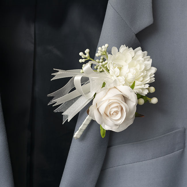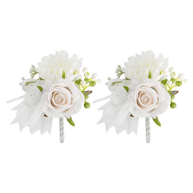 Mixed Flower Boutonniere Pack 2 White (13cmH)