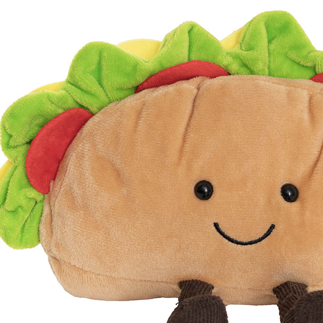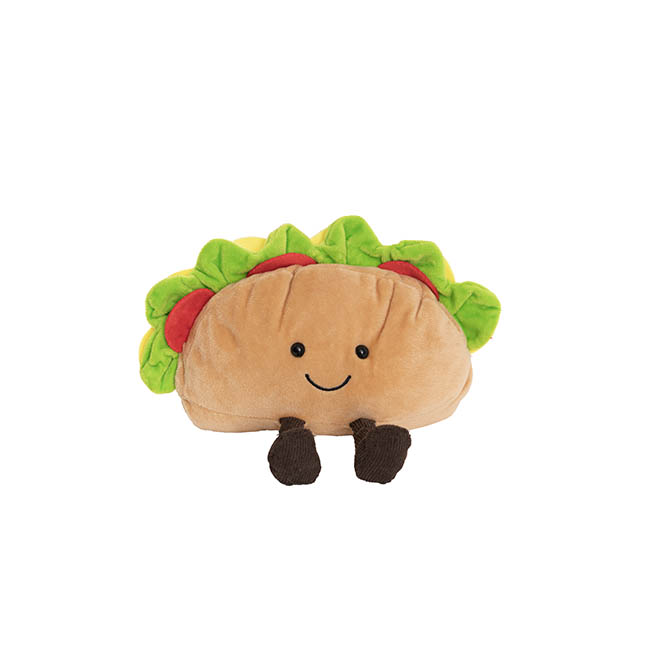 Say hello to Mr Tacos, the most huggable little fiesta around! Measuring 22cm long with a sitting height of 13cm, this adorable plush taco features cute dangling legs that give him loads of personality and charm. Made from super soft fabric with colourful felt-style fillings peeking out, Mr Tacos is perfect for cuddles, gifting, or adding a playful touch to any room. Fun, quirky, and irresistibly soft, he’s a must-have for plush lovers and food-themed collections alike.