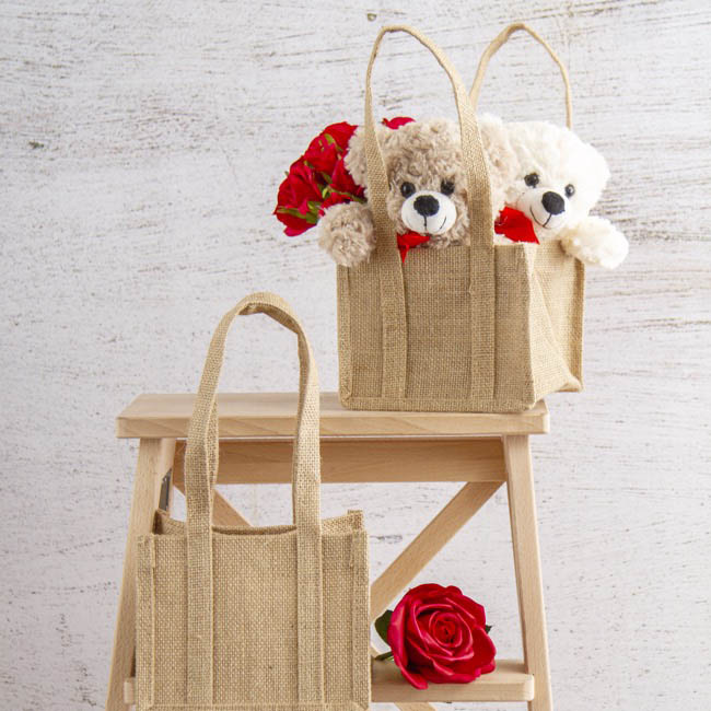 The jute bag is lined with plastic for extra protection and is waterproof. These bags are perfect for fresh floral arrangements or hampers and gifts. Sold as an individual bag. .