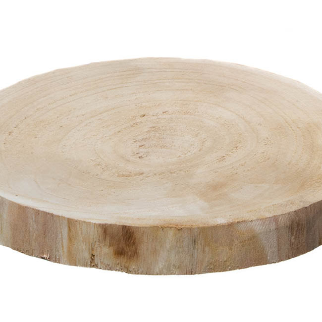 This is the classic Paulownia tree slice made of natural wood. They are the perfect accessory to showcase cakes, candles, sundry designs and more. Part of an exciting range of natural wooden slabs that adds an instant rustic and woodland feel to event and shop styling. Available in a larger size. Handmade and eco-friendly.