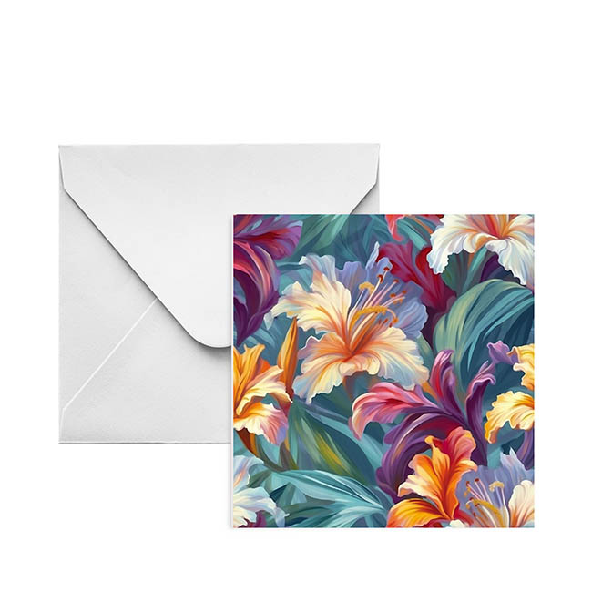 This Nouvelle card has a square layout with side fold, so the card will stand upright for display. The side fold design provides a premium feel and the square design adds extra space on the inside for you to convey heartfelt messages or well wishes.